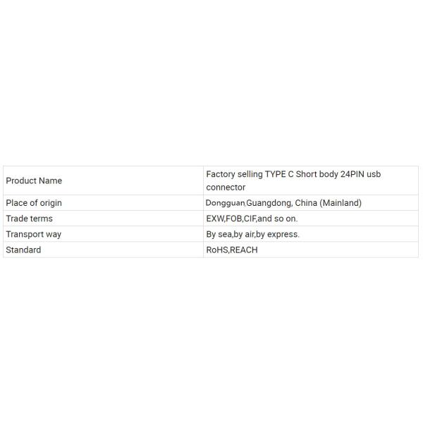 Factory selling TYPE C Short body 24PIN usb connector